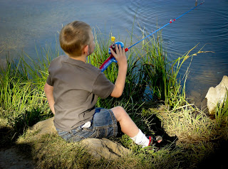 While dad was off to New York we did a few things with some of his cousins and he asked EVERYDAY after that if we could do it again. Finally, I told him about going to G and G's and that we could go to a parade and go fishing. He changed from asking about his cousins to asking if we were going to go to Grandma's house.